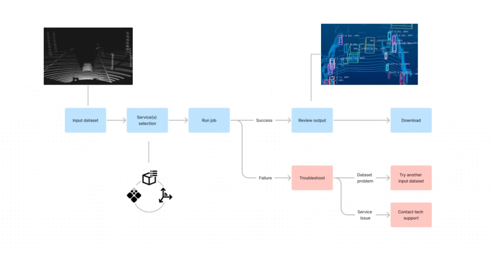 Users select a point cloud dataset, select the perception services they want for it, and then submit the “ job”.