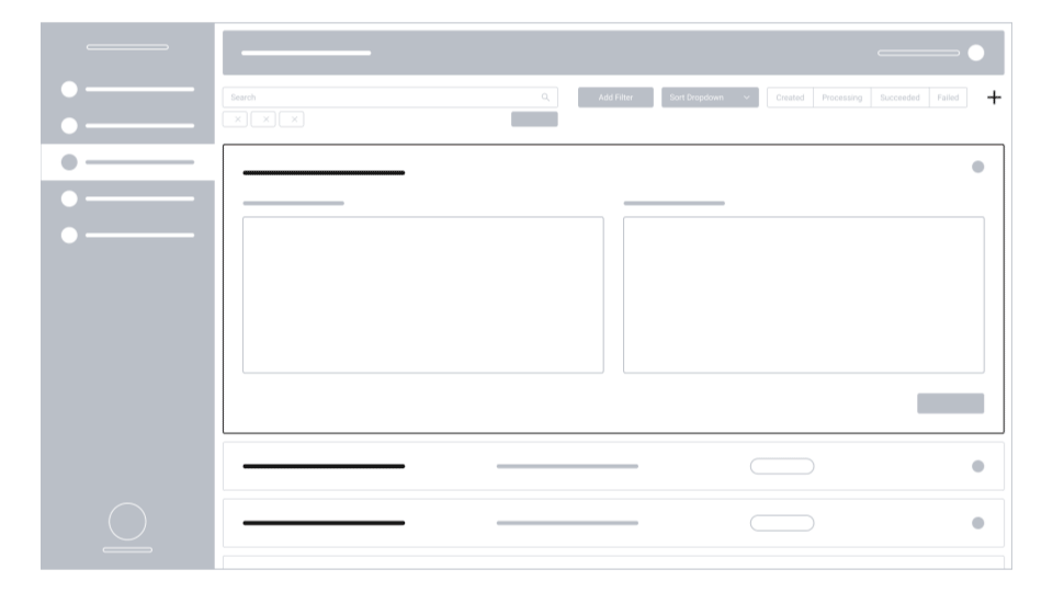 The information architecture expanded from the basic user flow into our v1 feature set while using the core beats to define its blocks. I also included a range of search and sorting options in order to account for managing a large number of files.