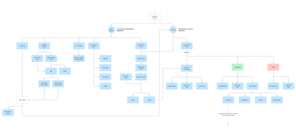 I had to design a feature set turning these processes into services the user could select, run, monitor progress, and review the output file when completed. The ability to curate and search for past and current "jobs" was also a must.